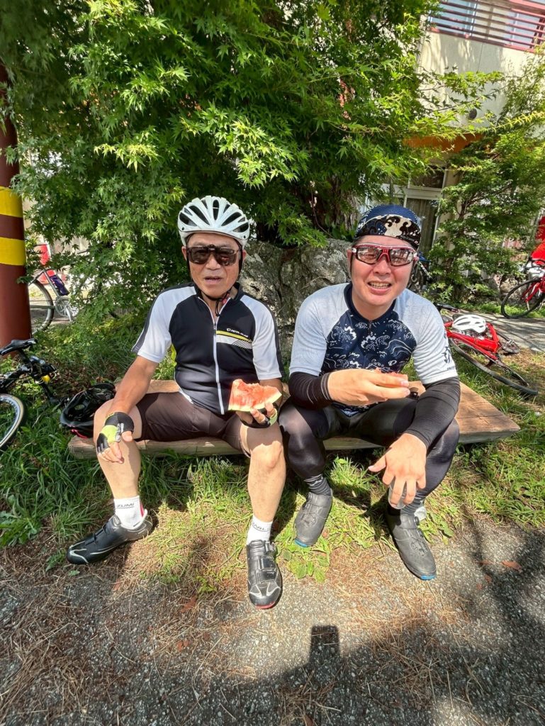毎年恒例の銀輪イベント、県民の森ヒルクライムを開催しました!小学4年生から70歳台まで約30名がエントリー。お店を出発してウォーミングアップしながら上り口の門田信号まで移動。信号から脚力に合わせて時差スタート、一番速いグループが最終スタートという形式。30分切れたら十分健脚さんだと思いますが皆さん速かったですね。中距離の上りとはいえ、小学生や70歳オーバーでチャレンジするのも本当に凄いと思う。ゴールで冷たいドリンクとスイカを用意しました♪ 皆さん暑い中お疲れ様でした!銀輪イベントは基本サイクリングですがたまにこういうレースっぽいのもやってます。